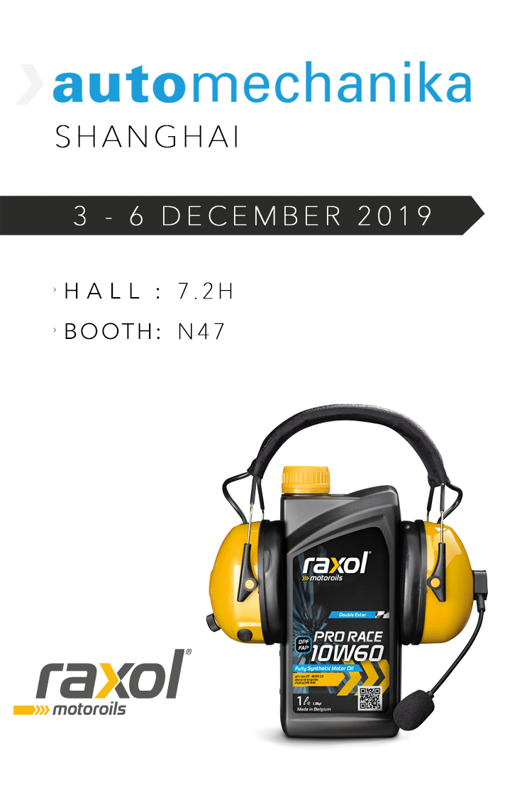 Pour la troisième année consécutive, la marque Raxol sera présente au salon Automechanika Shanghai. Nous souhaitons la bienvenue à nos partenaires pour une visite sur le stand N47 dans le pavillon 7.2 H. entre le 3 et le 6 décembre 2019 :